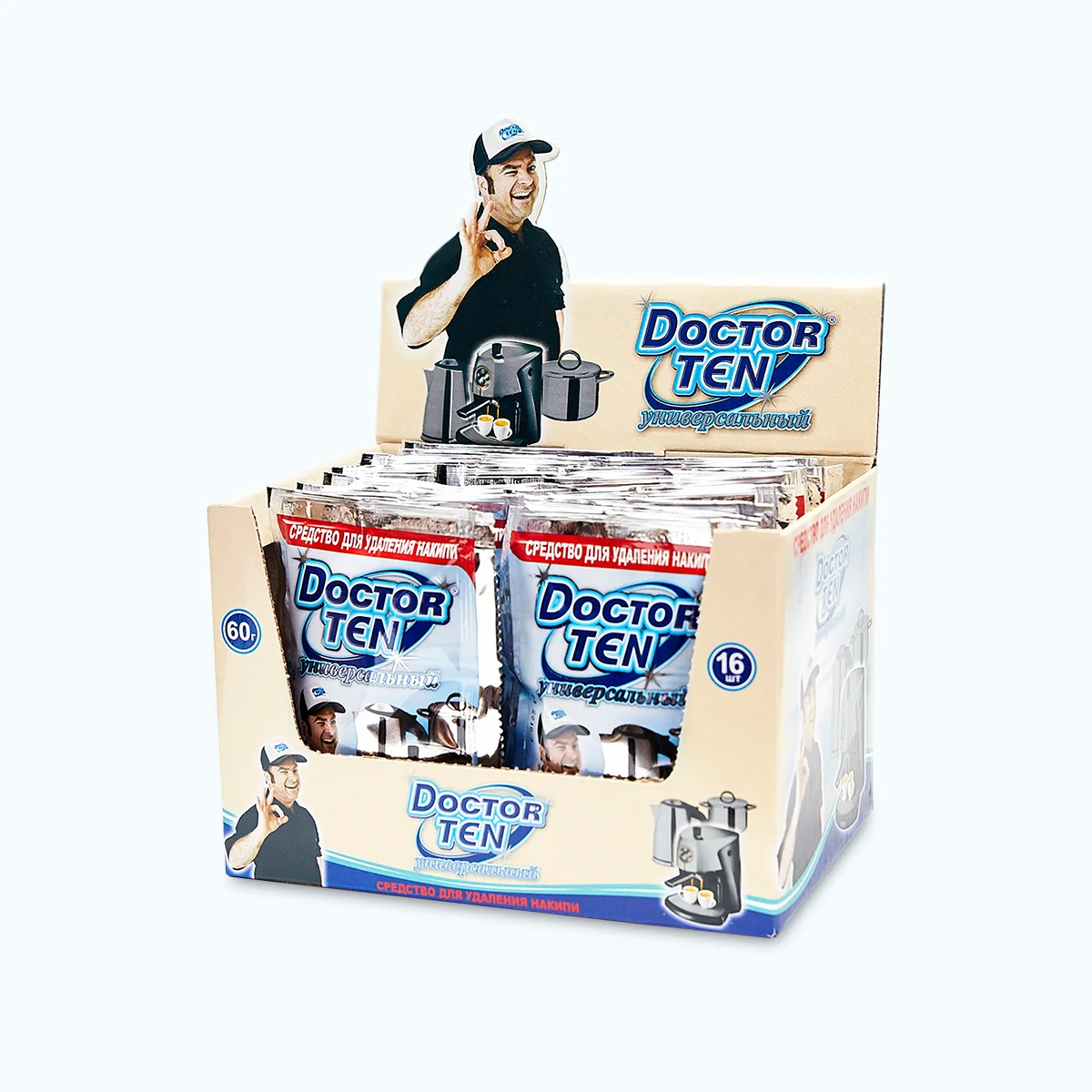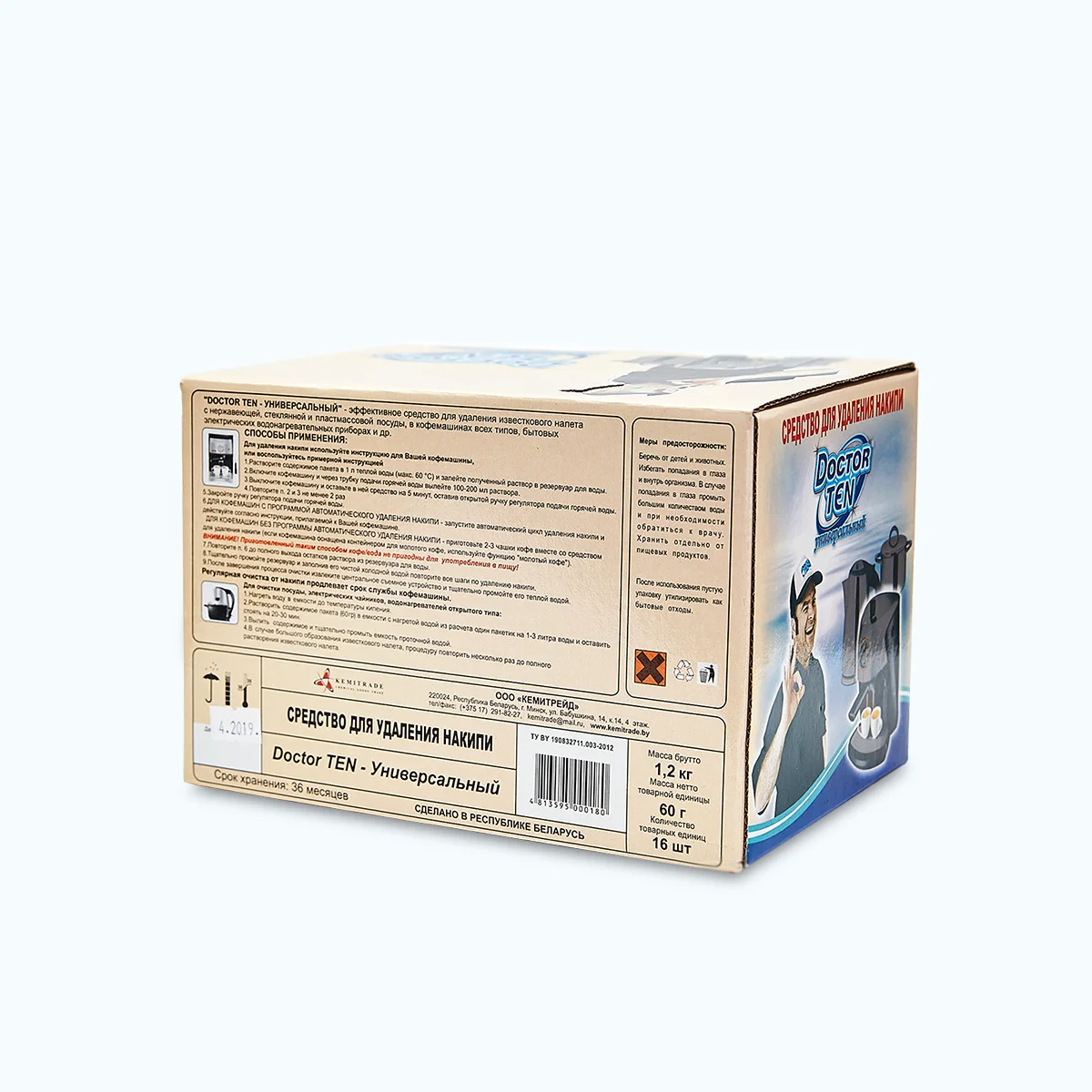 «Doctor TEN-Универсальный» — эффективное средство для удаления известкового налета в кофемашинах всех типов, в бытовых электрических водонагревательных приборах, а также с нержавеющей, стеклянной и пластмассовой посуды. Средство от накипи идеально промывает все нагревательные элементы и стенки в кофемашинах, электрочайниках, самоварах и посуде.