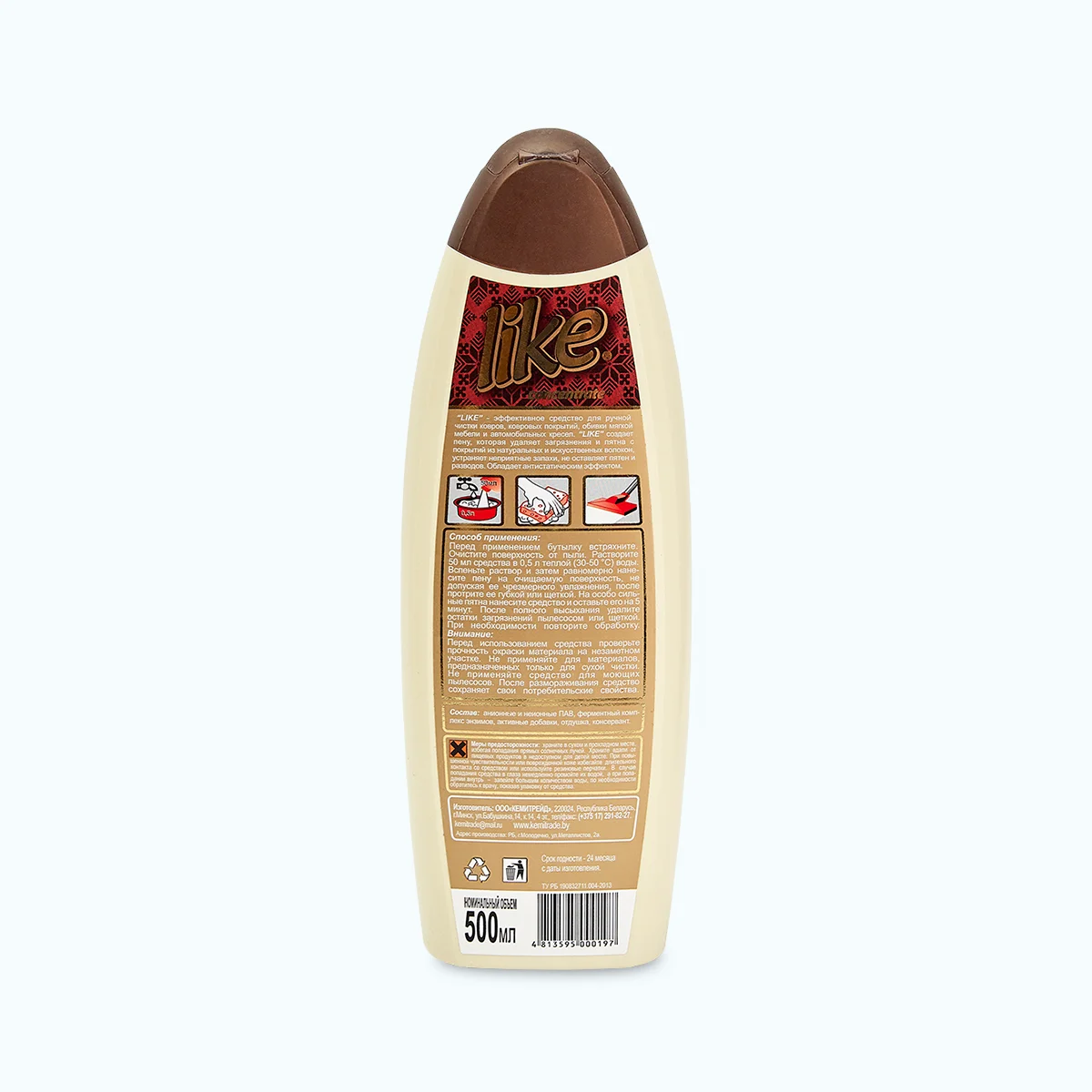 LIKE Concentrate — жидкое средство для ручной чистки ковров и ковровых покрытий. Эффективно чистит и удаляет пятна с ковров, ковровых покрытий, обивки мягкой мебели и автомобильных кресел, а также подходит для ковровых покрытий из натуральных волокон. Даже частое использование продукта не портит цвет и структуру покрытия.
