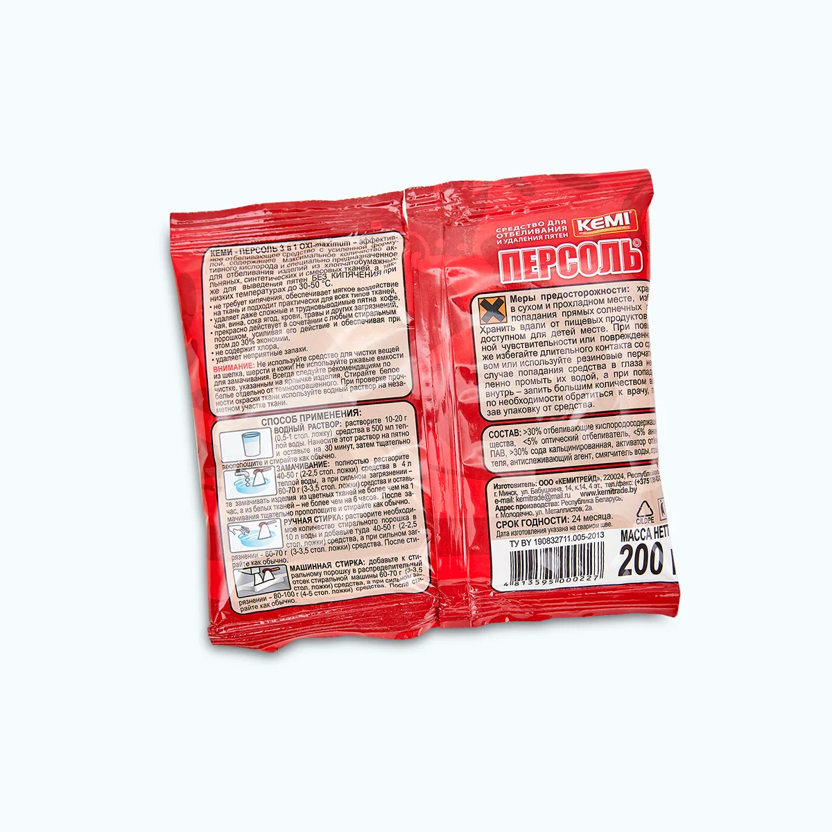 «Персоль – Окси 3 в 1» – отбеливатель кислородосодержащий, специально созданный для отбеливания и выведения пятен без кипячения. Его усиленная формула содержит максимальное количество активного кислорода, что превращает данный продукт в отбеливатель-пятновыводитель-усилитель порошка (3 в 1). Быстро и безукоризненно отбеливает, сохраняя при этом цвет и структуру ткани, эффективно удалять трудновыводимые пятна.